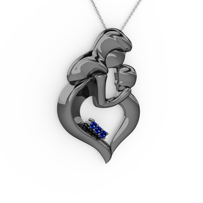 Lab safir 925 ayar siyah rodyum kaplama gümüş kolye (40 cm beyaz altın rolo zincir)