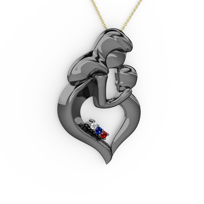 Pırlanta, garnet ve lab safir 925 ayar siyah rodyum kaplama gümüş kolye (0.015 karat, 40 cm gümüş rolo zincir)