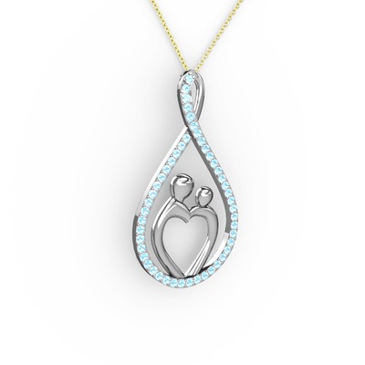 Akuamarin 18 ayar beyaz altın kolye (40 cm altın rolo zincir)