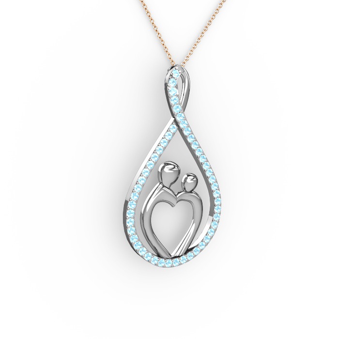 Akuamarin 8 ayar beyaz altın kolye (40 cm rose altın rolo zincir)