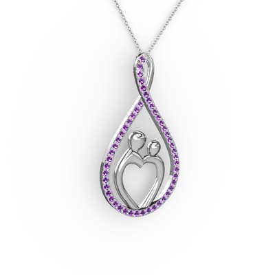 Ametist 14 ayar beyaz altın kolye (40 cm gümüş rolo zincir)
