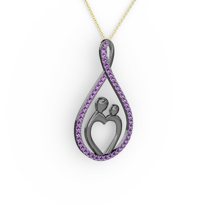 Ametist 925 ayar siyah rodyum kaplama gümüş kolye (40 cm gümüş rolo zincir)