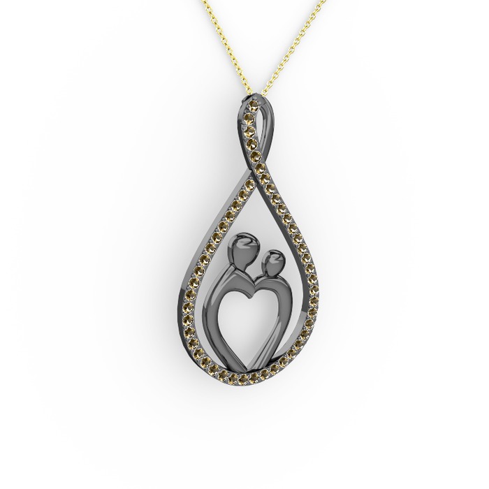 Dumanlı kuvars 925 ayar siyah rodyum kaplama gümüş kolye (40 cm altın rolo zincir)