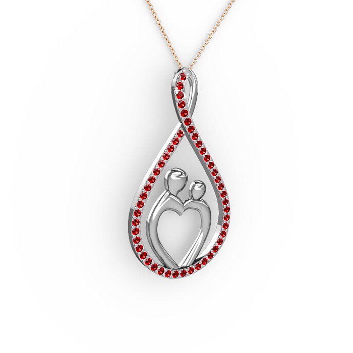 Garnet 8 ayar beyaz altın kolye (40 cm gümüş rolo zincir)