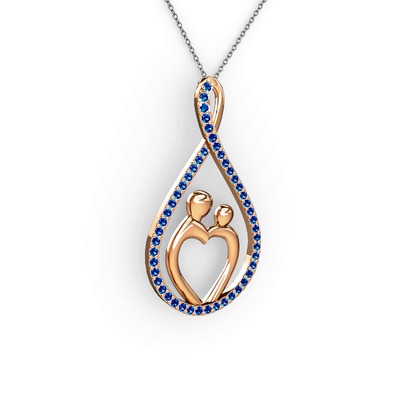 Lab safir 14 ayar rose altın kolye (40 cm gümüş rolo zincir)