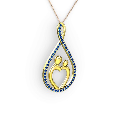 Lab safir 18 ayar altın kolye (40 cm rose altın rolo zincir)