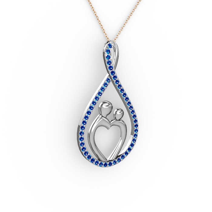 Lab safir 18 ayar beyaz altın kolye (40 cm rose altın rolo zincir)