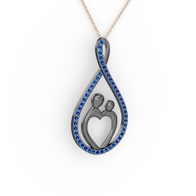 Lab safir 925 ayar siyah rodyum kaplama gümüş kolye (40 cm rose altın rolo zincir)