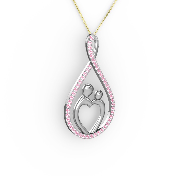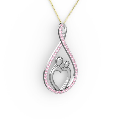 Pembe kuvars 14 ayar beyaz altın kolye (40 cm altın rolo zincir)