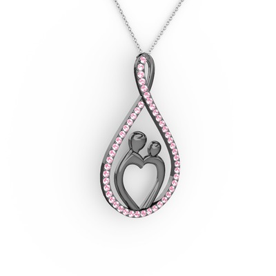 Pembe kuvars 925 ayar siyah rodyum kaplama gümüş kolye (40 cm beyaz altın rolo zincir)