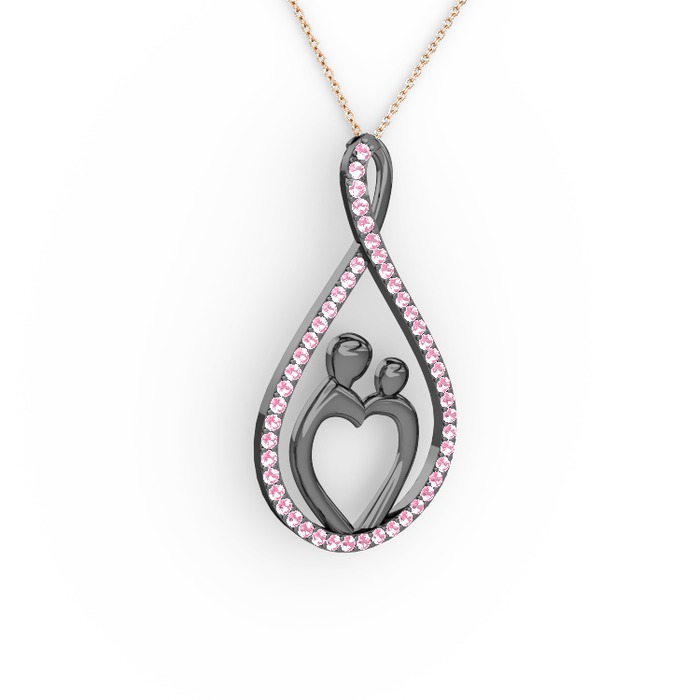 Pembe kuvars 925 ayar siyah rodyum kaplama gümüş kolye (40 cm rose altın rolo zincir)