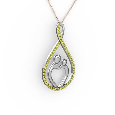 Peridot 8 ayar beyaz altın kolye (40 cm rose altın rolo zincir)