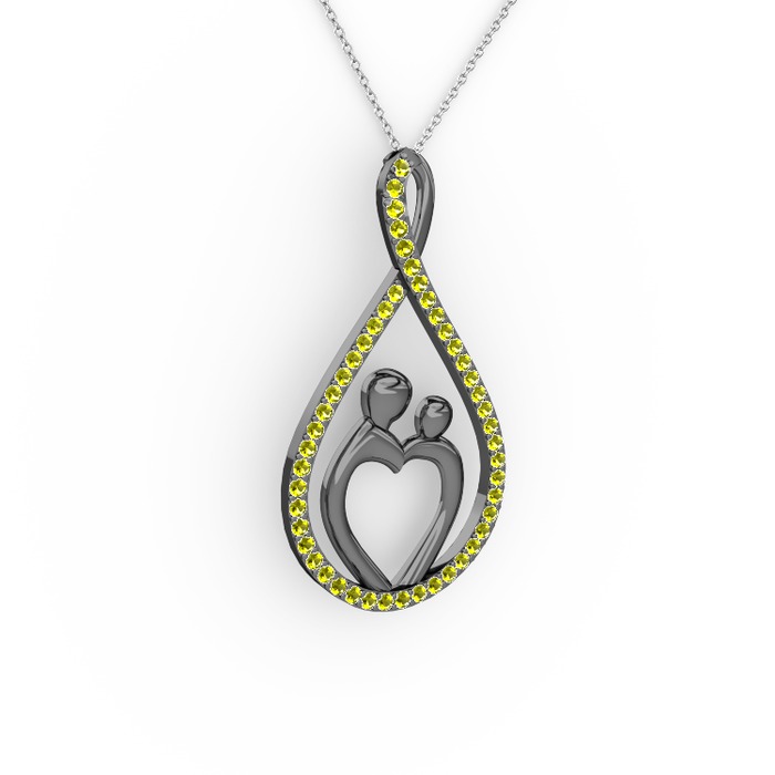 Peridot 925 ayar siyah rodyum kaplama gümüş kolye (40 cm beyaz altın rolo zincir)