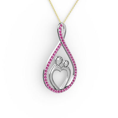 Rodolit garnet 14 ayar beyaz altın kolye (40 cm altın rolo zincir)