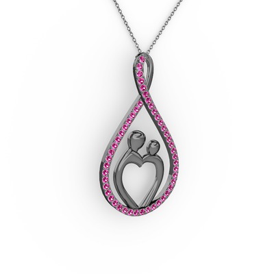 Rodolit garnet 925 ayar siyah rodyum kaplama gümüş kolye (40 cm gümüş rolo zincir)