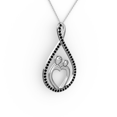 Siyah zirkon 14 ayar beyaz altın kolye (40 cm gümüş rolo zincir)
