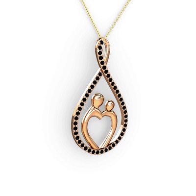 Siyah zirkon 8 ayar rose altın kolye (40 cm altın rolo zincir)