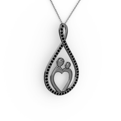Siyah zirkon 925 ayar siyah rodyum kaplama gümüş kolye (40 cm gümüş rolo zincir)