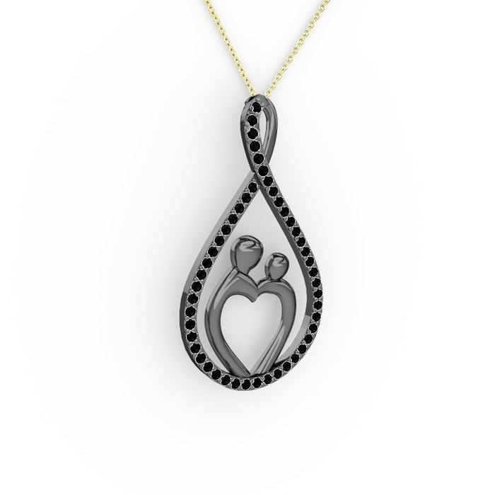 Siyah zirkon 925 ayar siyah rodyum kaplama gümüş kolye (40 cm gümüş rolo zincir)