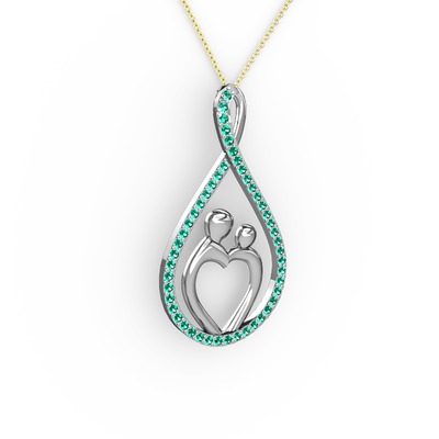Yeşil kuvars 8 ayar beyaz altın kolye (40 cm gümüş rolo zincir)