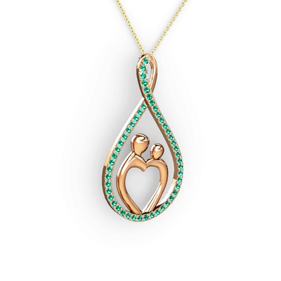 Yeşil kuvars 8 ayar rose altın kolye (40 cm gümüş rolo zincir)