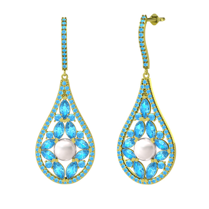 Inci ve akuamarin 18 ayar altın küpe