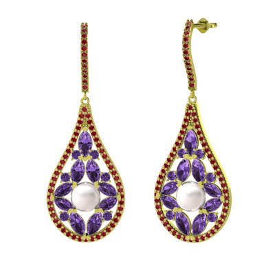 Inci, ametist ve garnet 18 ayar altın küpe