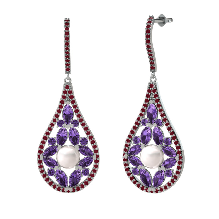 Inci, ametist ve kök yakut 925 ayar gümüş küpe