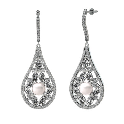 Inci ve beyaz zirkon 925 ayar gümüş küpe
