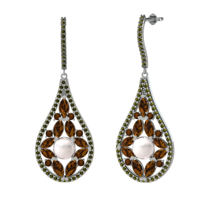 Inci, dumanlı kuvars ve peridot 925 ayar gümüş küpe