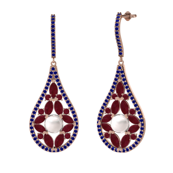 Inci, kök yakut ve lab safir 925 ayar rose altın kaplama gümüş küpe