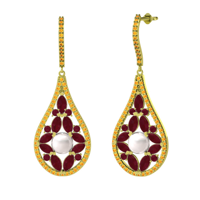 Inci, kök yakut ve sitrin 8 ayar altın küpe