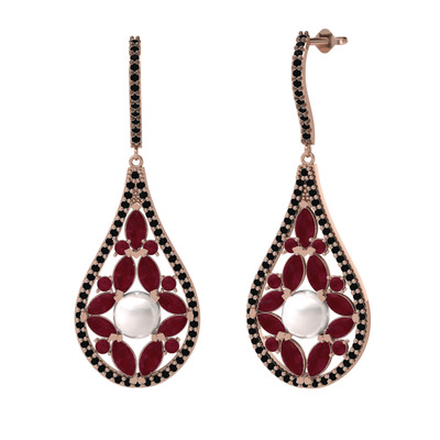 Inci, kök yakut ve siyah zirkon 8 ayar rose altın küpe