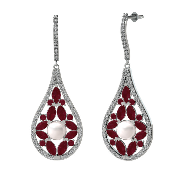 Inci, kök yakut ve swarovski 925 ayar gümüş küpe