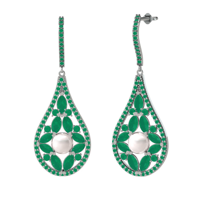 Inci ve kök zümrüt 18 ayar beyaz altın küpe