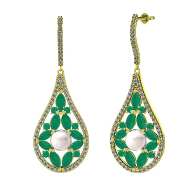 Inci, kök zümrüt ve pırlanta 8 ayar altın küpe (1.11 karat)