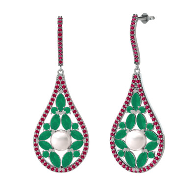 Inci, kök zümrüt ve rodolit garnet 925 ayar gümüş küpe