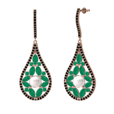 Inci, kök zümrüt ve siyah zirkon 925 ayar rose altın kaplama gümüş küpe