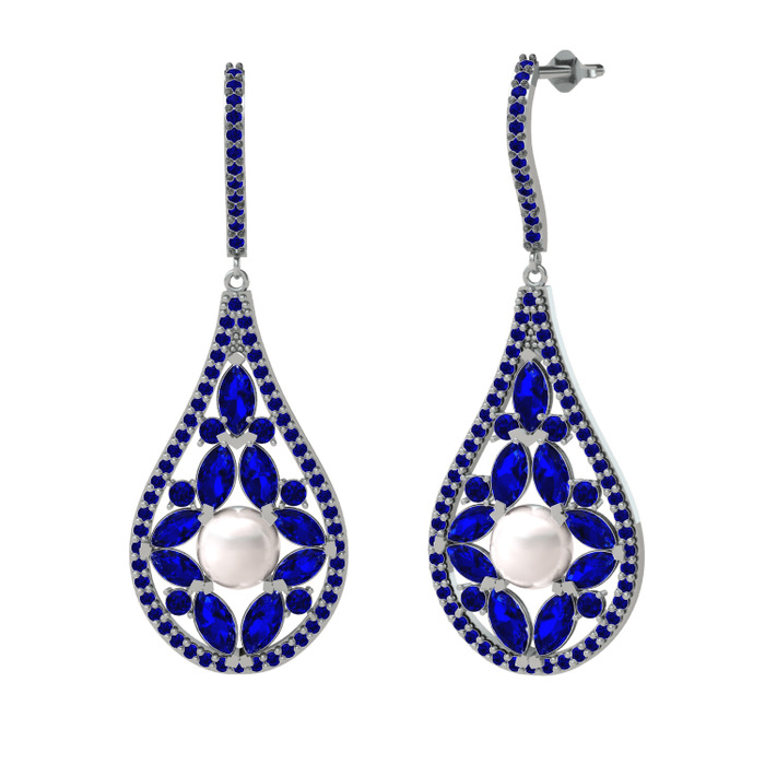 Inci ve lab safir 18 ayar beyaz altın küpe