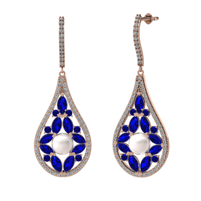 Inci, lab safir ve beyaz zirkon 925 ayar rose altın kaplama gümüş küpe