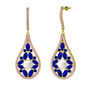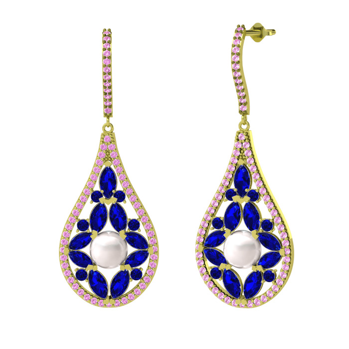 Inci, lab safir ve pembe kuvars 18 ayar altın küpe
