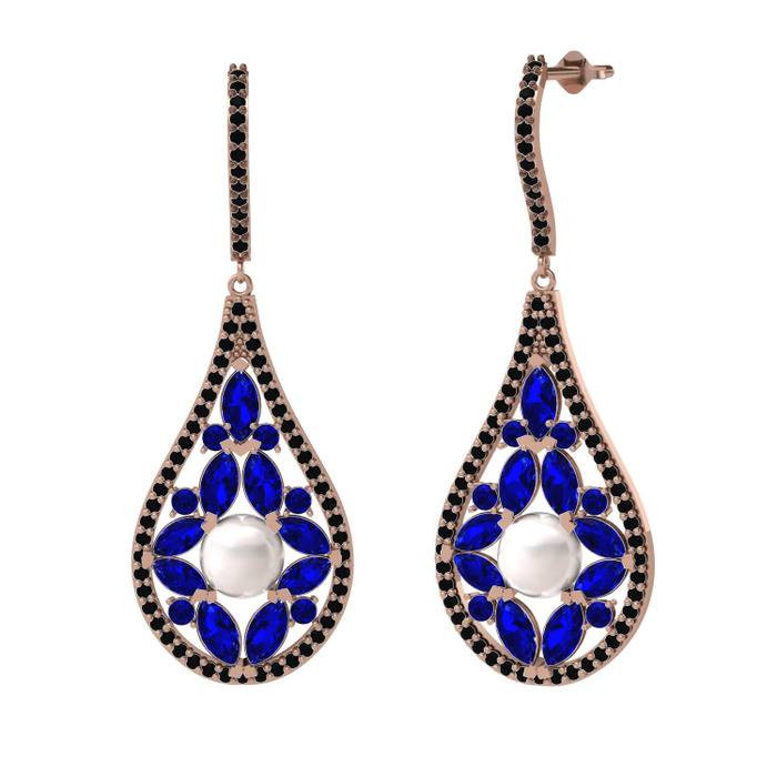 Inci, lab safir ve siyah zirkon 8 ayar rose altın küpe