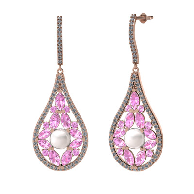 Inci, pembe kuvars ve pırlanta 8 ayar rose altın küpe (1.11 karat)