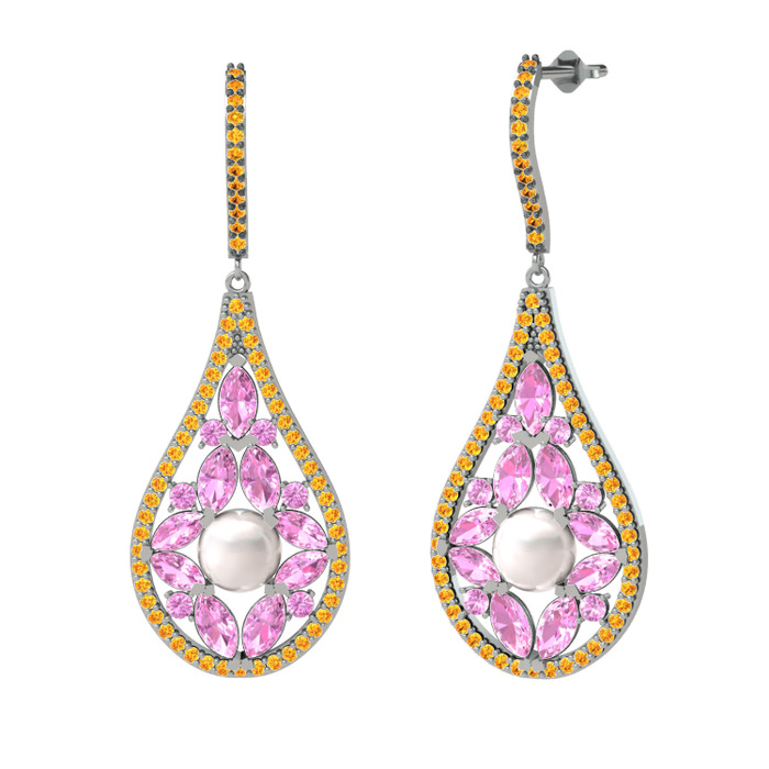 Inci, pembe kuvars ve sitrin 925 ayar gümüş küpe