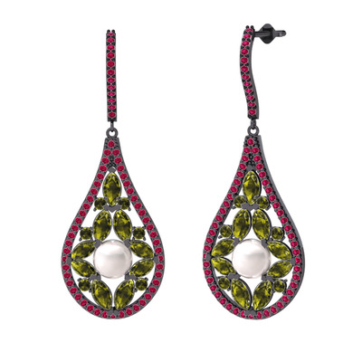 Inci, peridot ve rodolit garnet 925 ayar siyah rodyum kaplama gümüş küpe