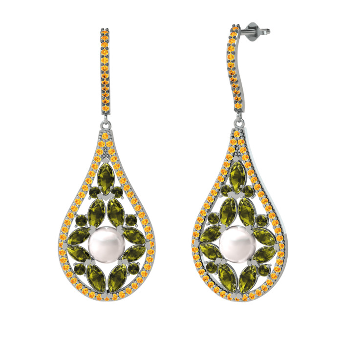 Inci, peridot ve sitrin 925 ayar gümüş küpe