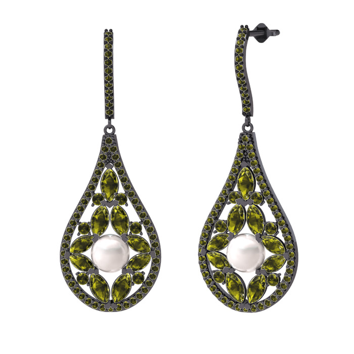 Inci ve peridot 925 ayar siyah rodyum kaplama gümüş küpe