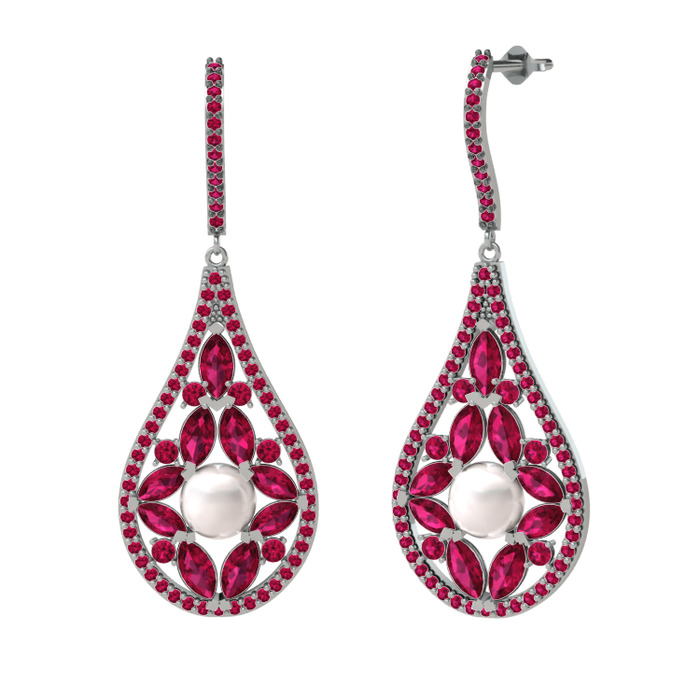 Inci ve rodolit garnet 18 ayar beyaz altın küpe