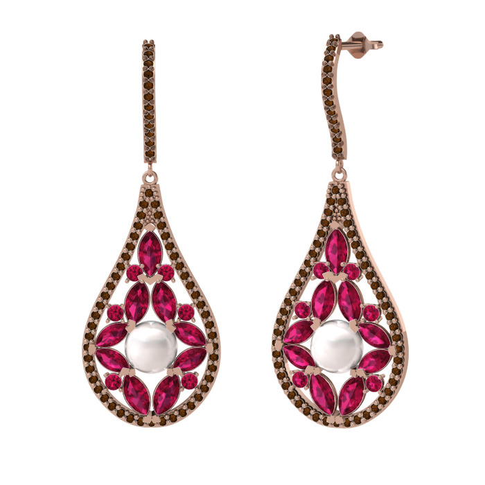 Inci, rodolit garnet ve dumanlı kuvars 14 ayar rose altın küpe