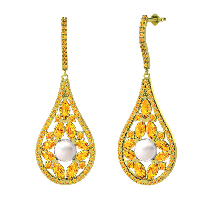 Inci ve sitrin 18 ayar altın küpe